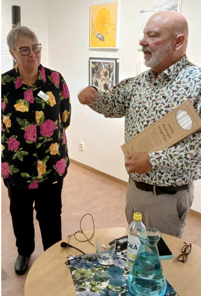 Besökarna lämnade biblioteket i glatt samspråk och med ett leende på läpparna. Ett bevis på att det var en lyckad satsning är att Tyringe Konstförening fick flera nya medlemmar.